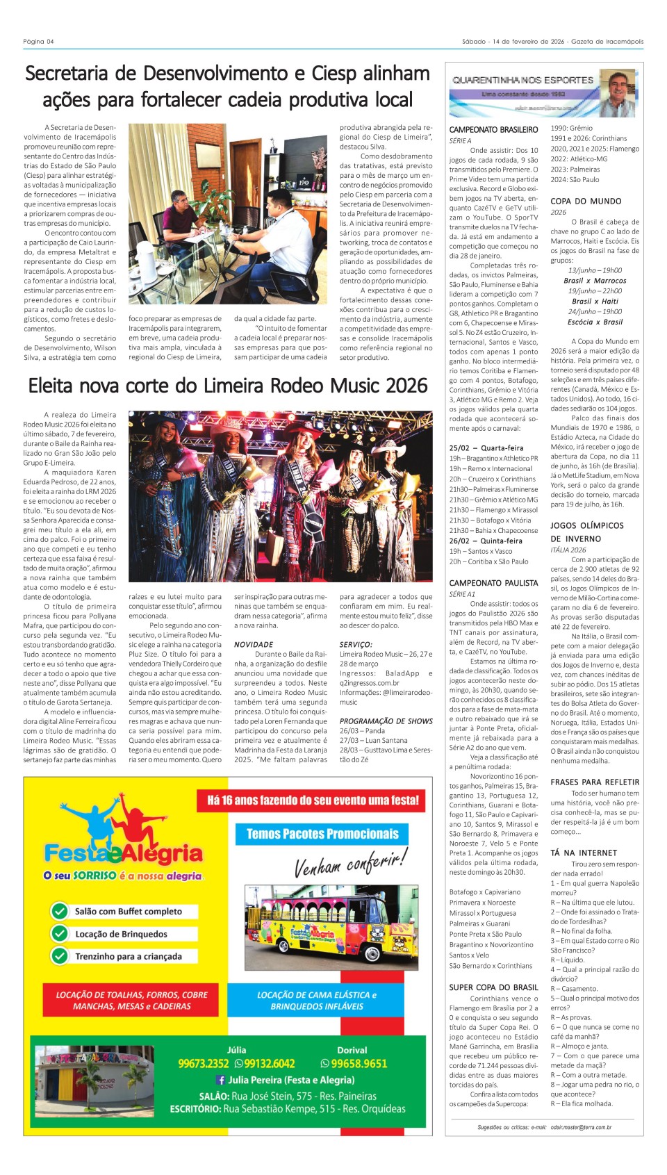 Edição 861 – Gazeta Digital Publicado em 14 de fevereiro de 2026 Página 1 Página 2 Página 3 Página 4 Compartilhe:FacebookGoogleLinkedInTwitter Os comentários estão desativados.
